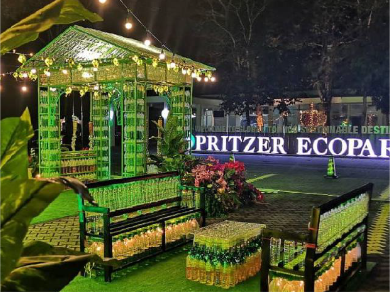 Experience the harmony of tradition and innovation through an art installation crafted entirely from recycled plastic bottles, inspired by the timeless beauty of Malaysian batik.